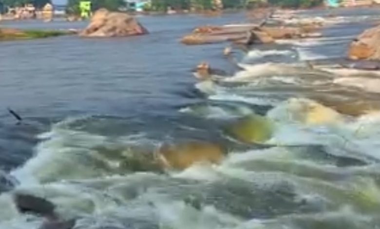 திருக்கோவிலுார் தென்பெண்ணை ஆற்றில், பெஞ்சல் புயல் வெள்ளத்தில் சின்னாபின்னமான தரைப்பாலம்.